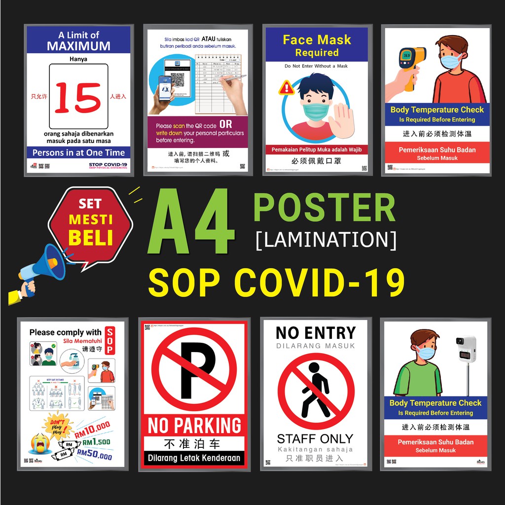 Sop Poster With Lamination Wear Mask Signage Papan Tanda No Smoking Sign No Entry No Parking Signboard Sanitizer Shopee Malaysia