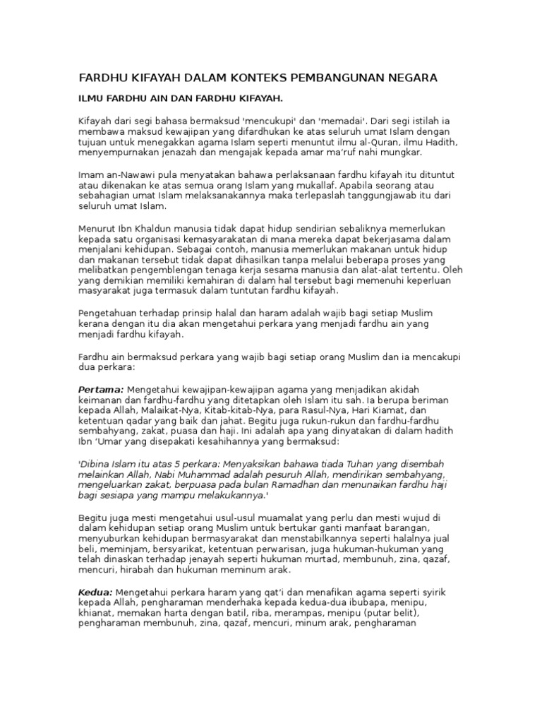 Fardhu Kifayah Dalam Konteks Pembangunan Negara